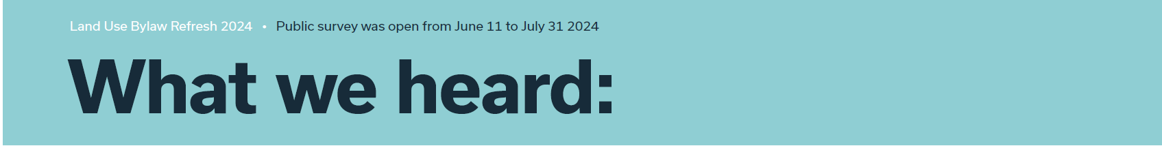 As feedback was received, it was determined that more public engagement is needed. The Land Use Bylaw refresh project timeline has been adjusted to properly undertake this engagement.