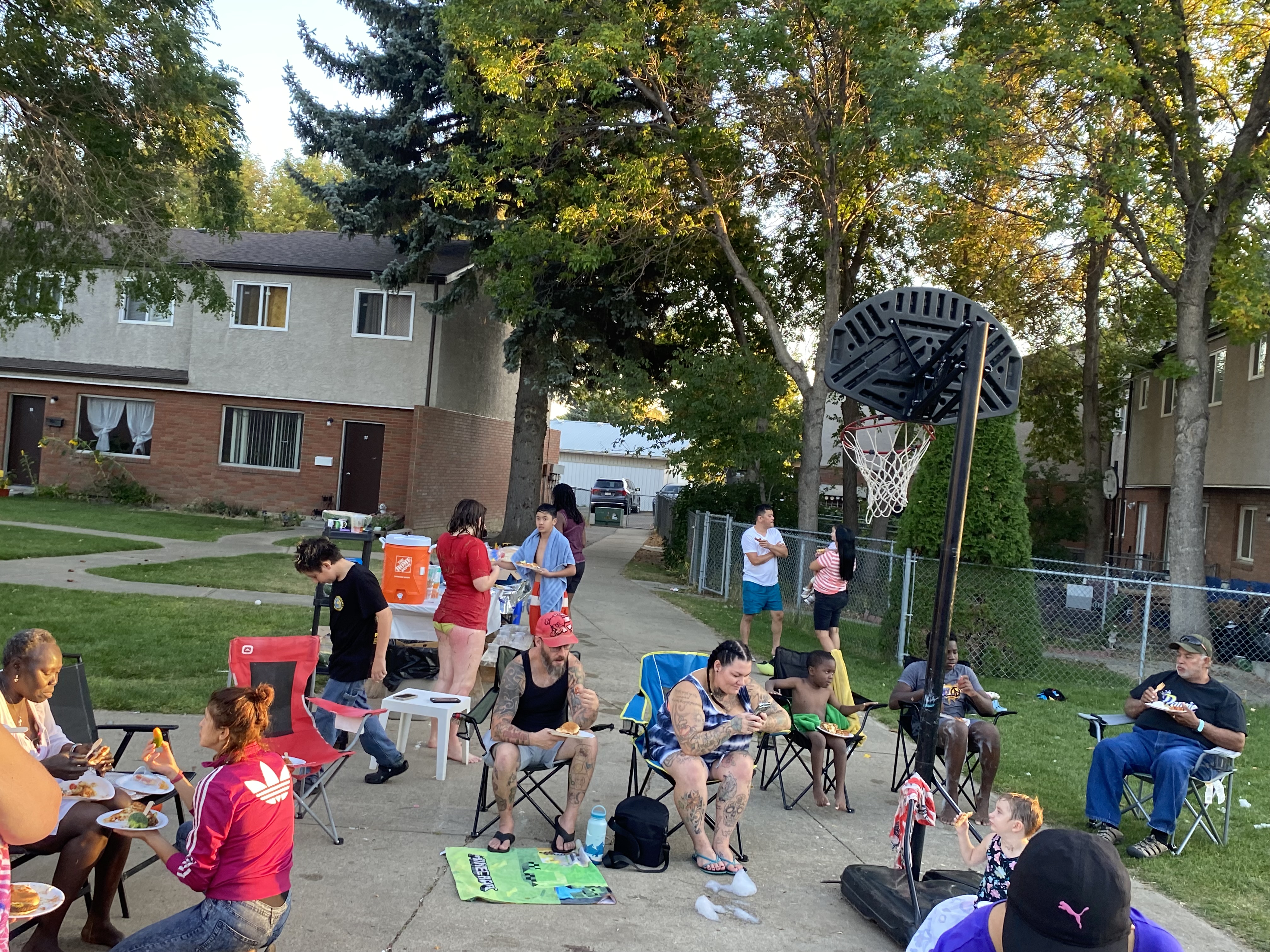 We get together and have a PotLuck Dinner with entertainment and an outdoor movie provided for the kids.
